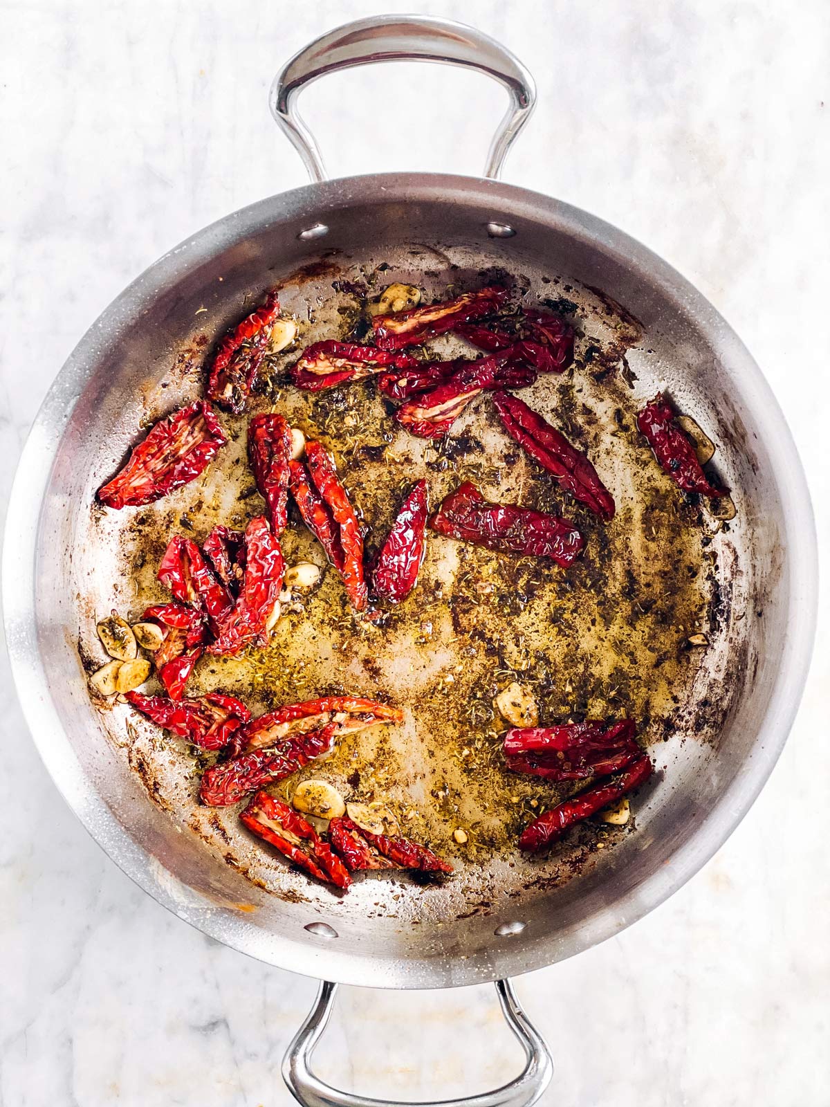- Sun-dried tomatoes/oil: I had sun-dried tomatoes on hand that were NOT packed in oil. The recipe tastes perfectly delicious using this “dry” kind of tomatoes and regular olive oil. If you have sun-dried tomatoes packed in oil, use 2 tablespoons of their oil in place of the olive oil for extra flavor!