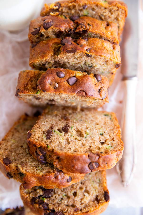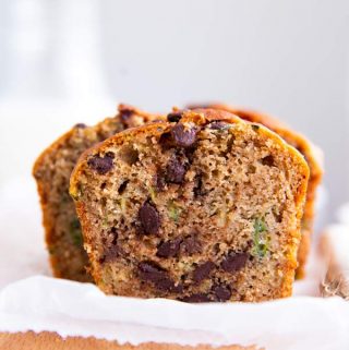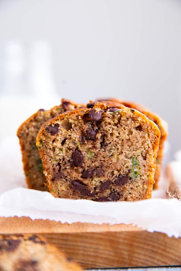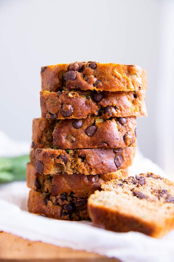 My kids and husband love a slice (or five, ahem) of zucchini bread as an afternoon snack. And my 3 year old especially when there’s chocolate chips involved…