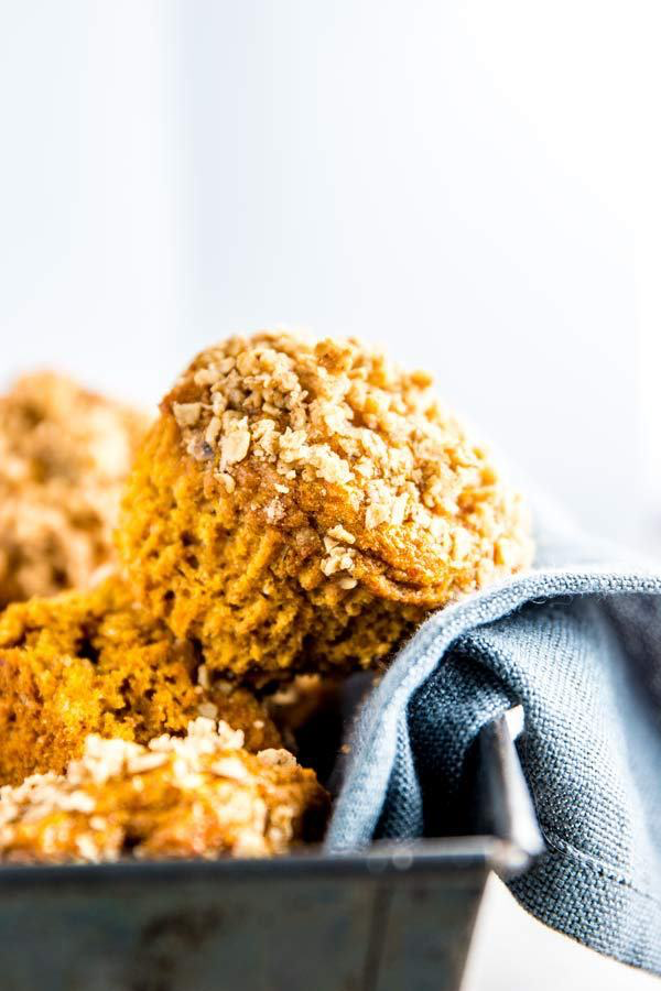 My family loves to cozy up on crisp fall morningswith allll the spiced pumpkin breakfast treats – and these healthy pumpkin muffins are one of our favorites, right alongside my Pumpkin Oatmeal Pancakes and my Pumpkin Baked Oatmeal.