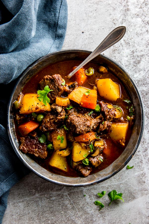 This Slow Cooker Beef Stew is a hearty and warming dinner recipe for cold fall and winter nights. It’s easy to assemble in the morning, and then it cooks in the crockpot all day!